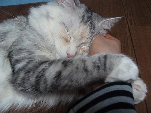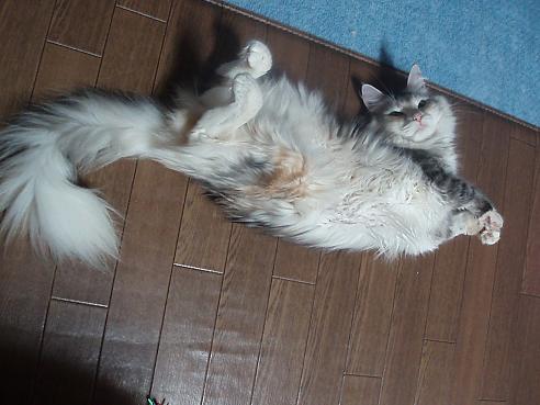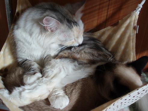 って、あんた・・・らいらいを下敷きにしてお手入れかいっ