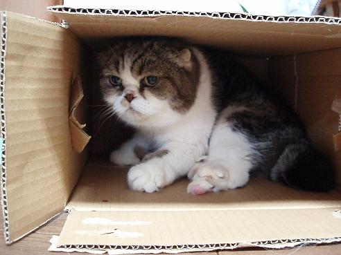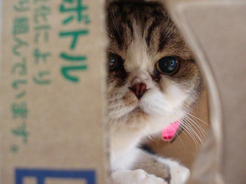 てんちゃんが、おニューな段ボールに入ってくれたので、