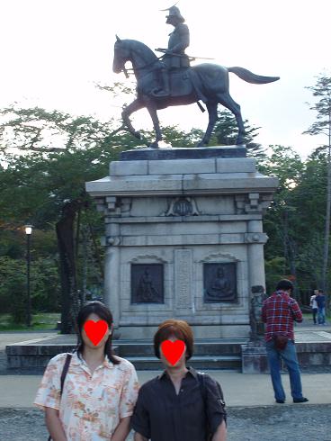 青葉城址の伊達政宗像の前でしおんママと