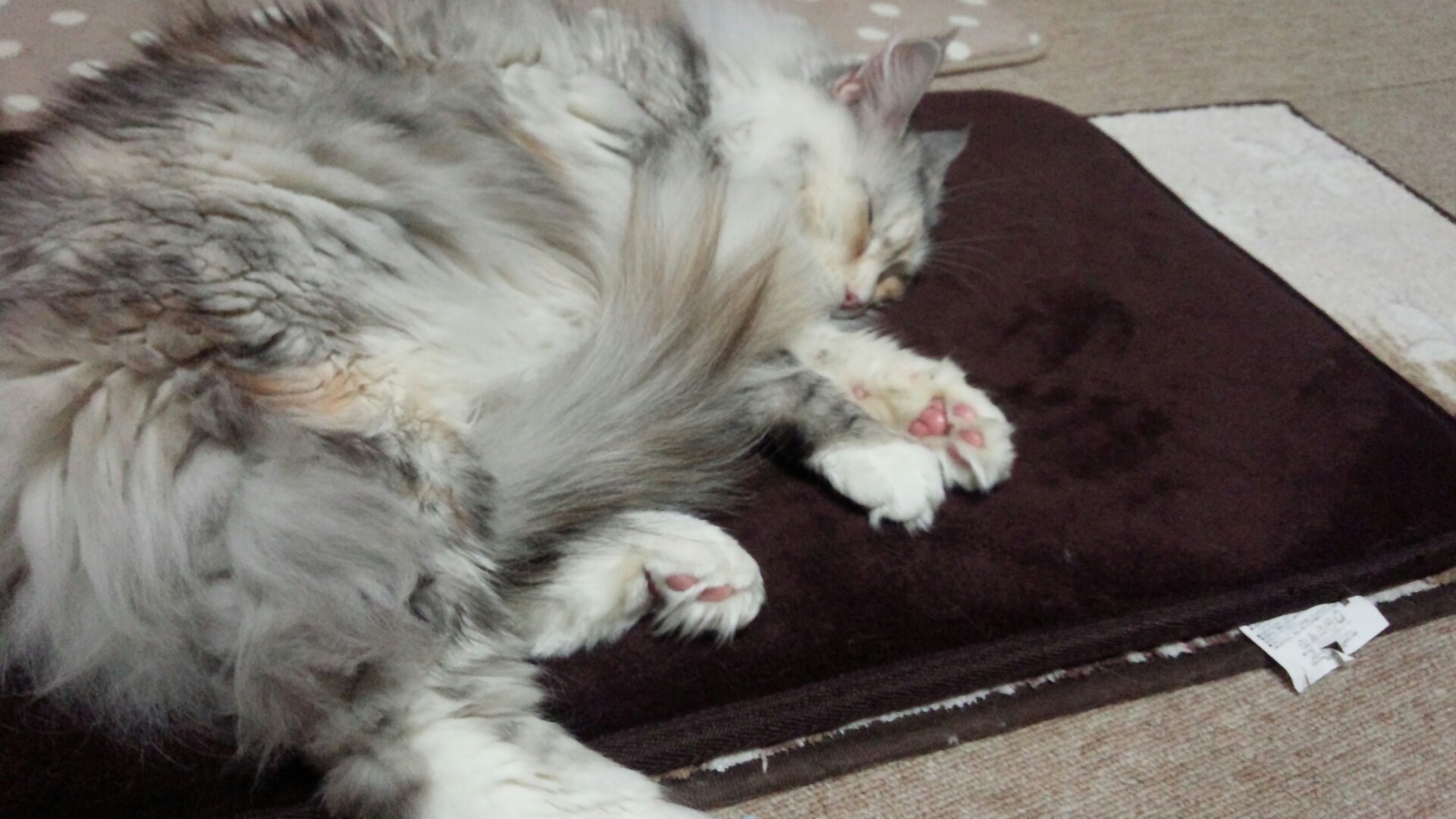 シルバータビーのメインクーン 一番大きくて鈍くささナンバーワンのKYな奴。抱っこと冬場の水遊びが大好き。ミー、ミンミ、ミースケと呼ばれている